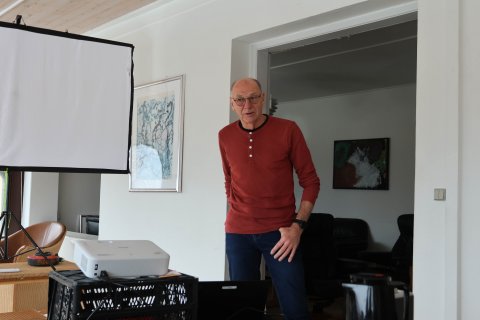 Jan viser et par små film, han har lavet, og tager det "simple" grej med, han har brugt (GoPro-kamera, små stativer m.m.).